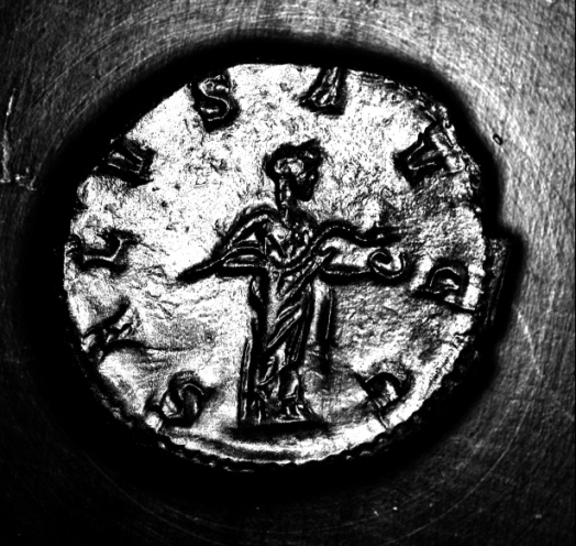 The results indicated that RTI not only assists coin identification, but also enables advanced conservation documentation and monitoring of cleaning operations. Moreover, RTI’s use in the field of preventive conservation, as well as its significance for providing access to cultural heritage collections is advantageous, in particular in the case of coins, given problems of small size and low relief detail. In addition, RTI offers an advanced method for the examination and condition reporting of surface effects, such as corroded, pitted surfaces with encrustations and scratches. Other effects due to conservation treatment can be captured using RTI. Also, monitoring of the conservation process as well as the condition of the coin is possible. RTI can be considered as the most effective way of evaluating the success of conservation treatment. Characteristic example is the coin with the legend SALUSAVGG, which represents Salus standing right, holding out a patera in her left hand to feed a snake held in her right arm.