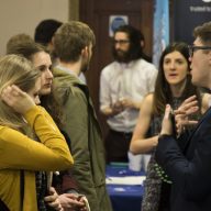 11.00 – The Fair has now opened and there is a queue of students waiting at the door. They’ve caught sight of the 61 companies with banners from the ceiling to the floor.