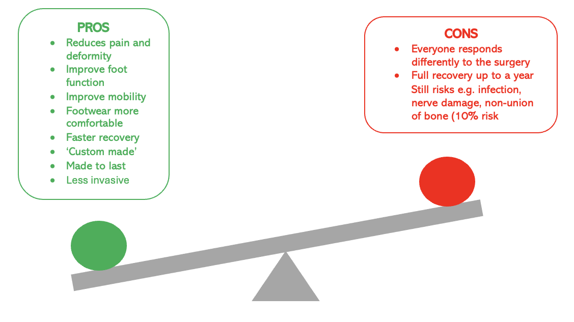 There are many arguments for why Arthroplasty is becoming more favourable than traditional Arthrodesis fusion methods (listed below), all of which are focused towards improving the patients care, recovery and experience with a toe joint replacement.