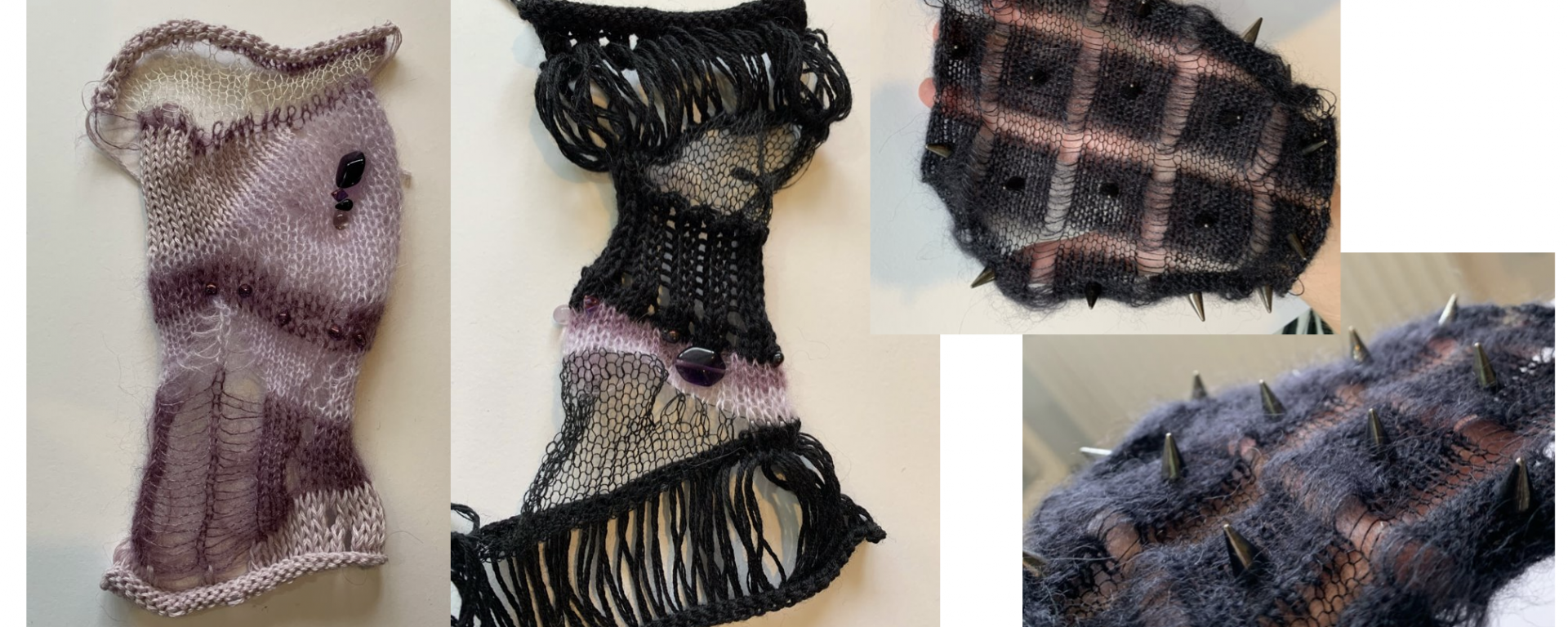 Our year 2 students have been enjoying working with the international swatch studio Bobble who sell their designs to brands including catwalk and household names across the globe. They have used the full range of knit opportunities offered by knitting machines at home and continued to be able to use the computerised Shima knitting machines.